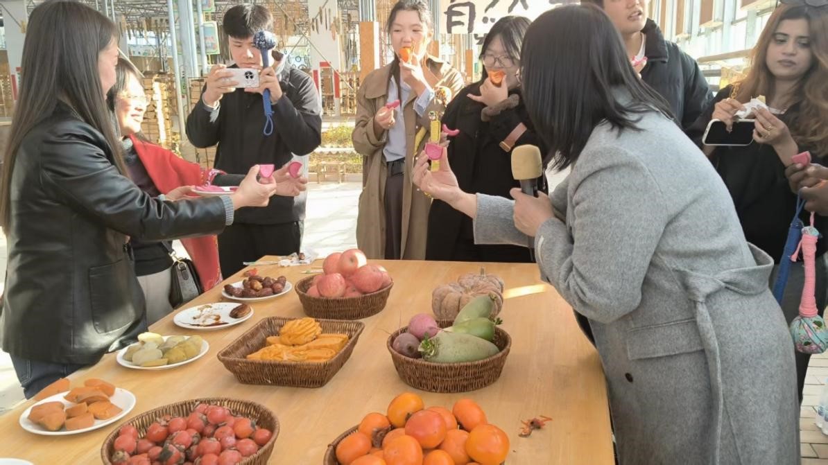 留学生们尽情品尝,连连称赞:蒙古留学生惊艳于柿子饼风味,主动询问制作技巧;摩洛哥留学生从红薯馍中体会到中国农民的食材珍视与生活智慧;巴基斯坦留学生则感慨美食背后的文化寓意。