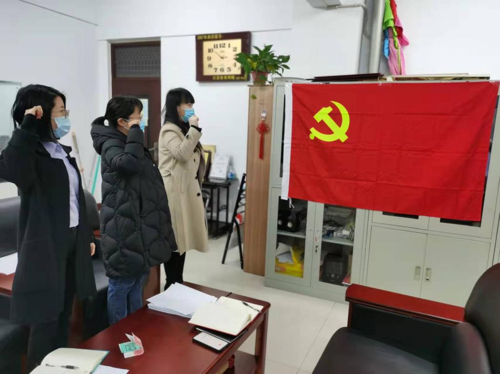 一、重温入党誓词。各位党员同志面向党旗排列整齐,由支部书记霍焱同志领誓,其他党员集体跟读;